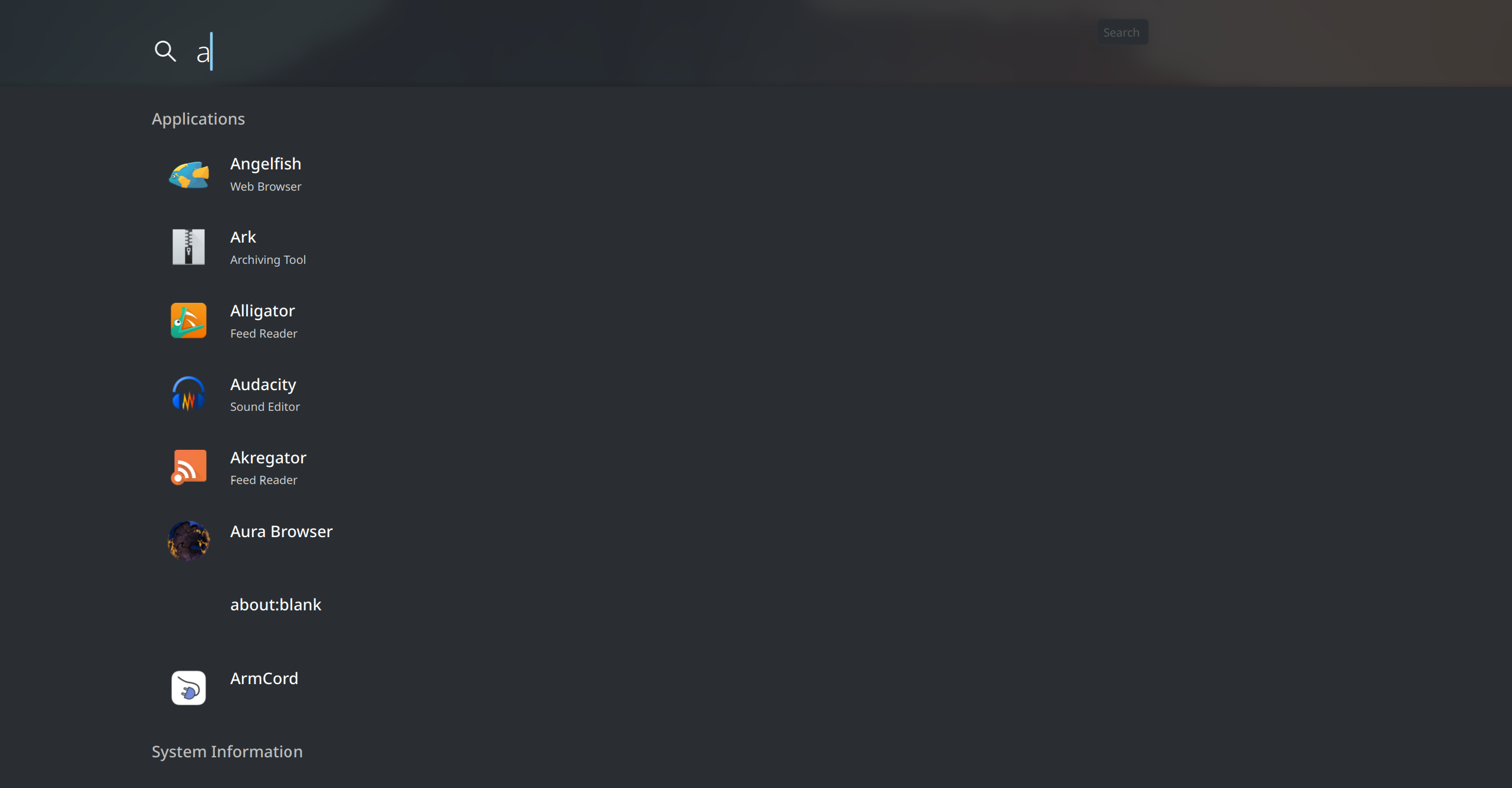 I also added a search view based on KRunner. This allows users to search for the applications they need without needing to manually scroll through the entire application list.